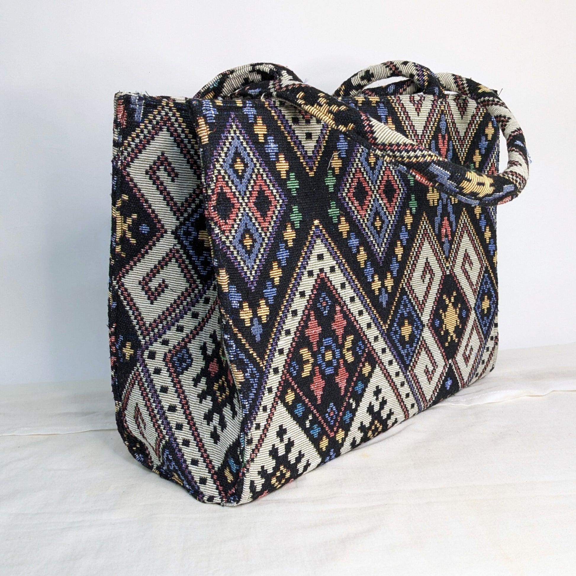 Add a pop of culture and creativity to your everyday look with this boho-style geometric tote bag. Featuring vibrant multicolor tribal patterns, this tote is not just a bag – it’s a statement of style and individuality.