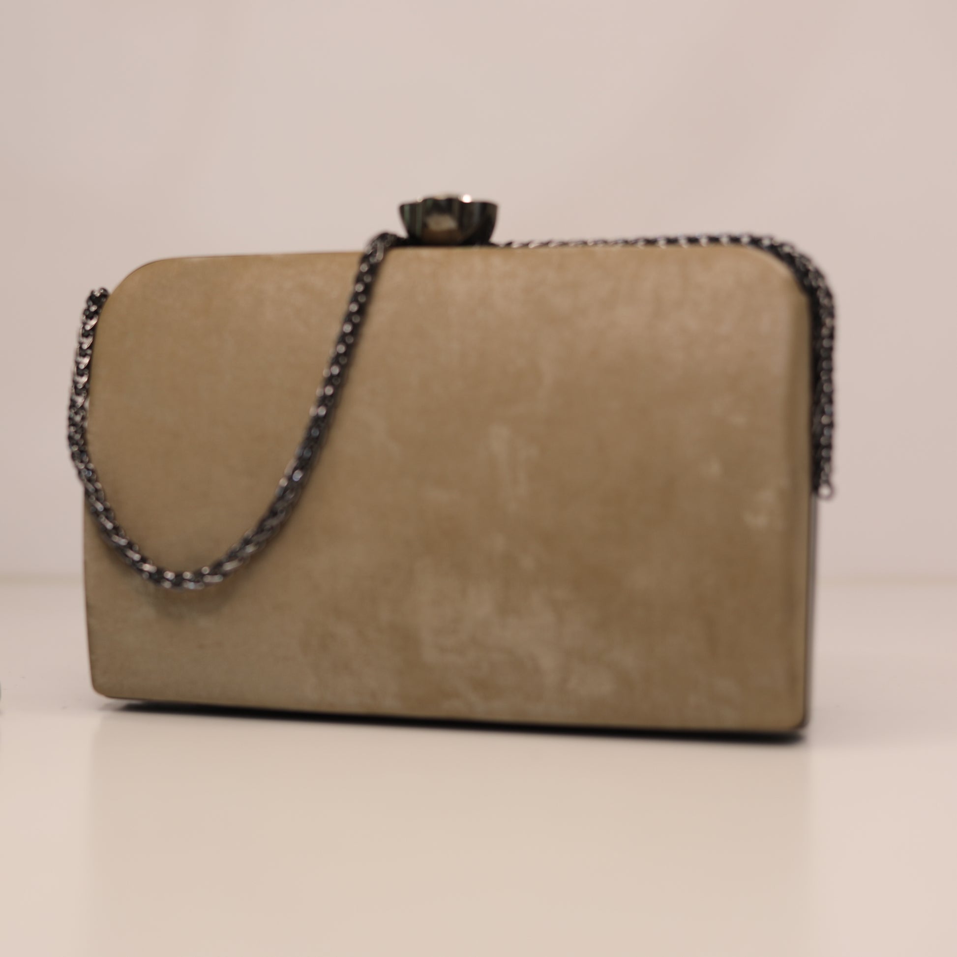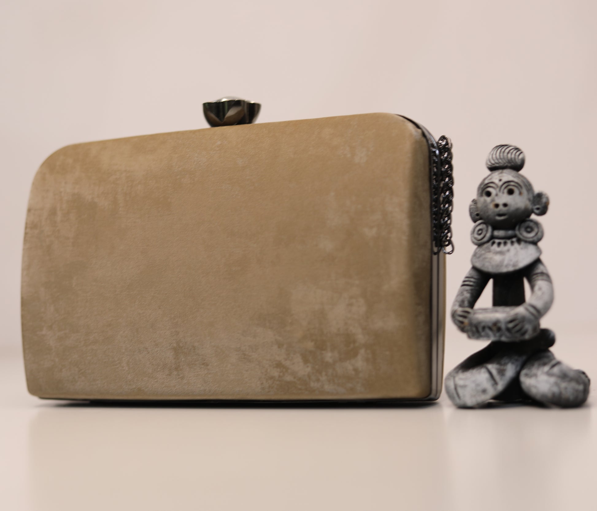 Add a touch of understated glam to your evening look with this Dusty Brown velvet clutch bag, featuring a soft matte finish, metallic clasp, and detachable chain strap. A perfect balance of elegance and functionality for special occasions.